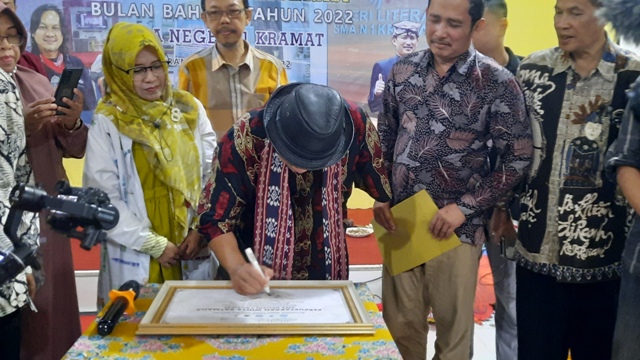 Gol A Gong menuju Galeri Literasi Sakra “Gelitsa”Gol A Gong dan tamu undanganPeresmian nama perpustakaan SMA Negeri 1 Kramat “Widya Ratmana”Penyerahan cinderamata Buku “RUJAKAN” karya Bapak Ahmad, S.Pd.,M.M.Pd bersama Bapak Atmo Tan Sidiq dan Pegiat Literasi Ibu Dra. Wiwik WidayaningtiasGol A Gong mengisi buku kunjungan Perpustakaan Widya Ratmana ditemani Bapak Kepala SMA Negeri 1 Kramat Bapak Ahmad, S.Pd.,M.M.Pd dan Kepala Perpustakaan Widya Ratmana Bapak Subur Adi Kurniawan, S.Pd.,M.M